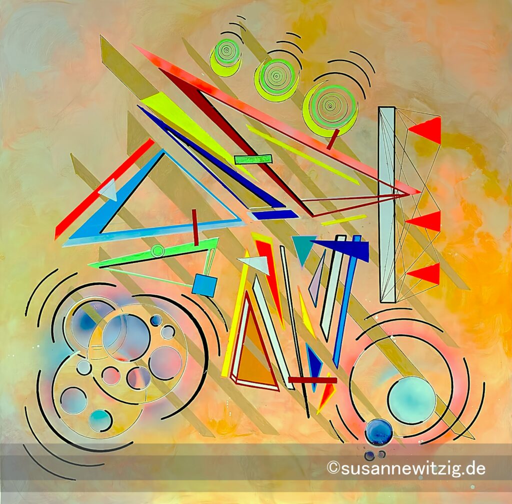 ‘State X’ describes an inner moment in which contradictory forces are at work simultaneously. Order is being established, while at the same time it is questioned and in the next moment completely torn apart. ‘State X’ is a snapshot of inner simultaneity. Structure, movement, and stillness occur simultaneously and exist in a fragile tension with one another, without resolving or dissolving. Geometric shapes and lines refer to the attempt to establish stability, orientation, and control. At the same time, circular movements disrupt this order and open the image to a need for expansiveness, breath, and inner peace. No element ultimately prevails. Everything remains present, everything claims space. In this way, a state of heightened density emerges, in which opposites are not reconciled but consciously held side by side. The work shows no endpoint and no solution. ‘State X’ remains open – as an honest depiction o